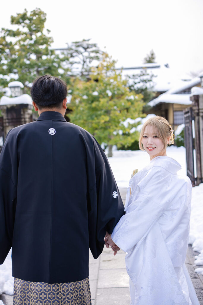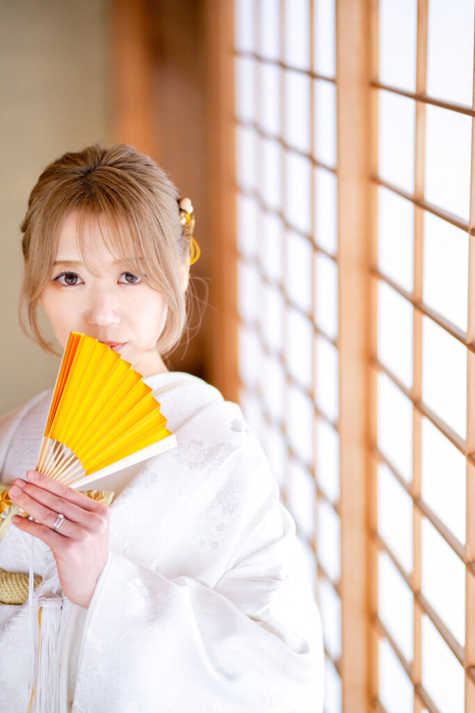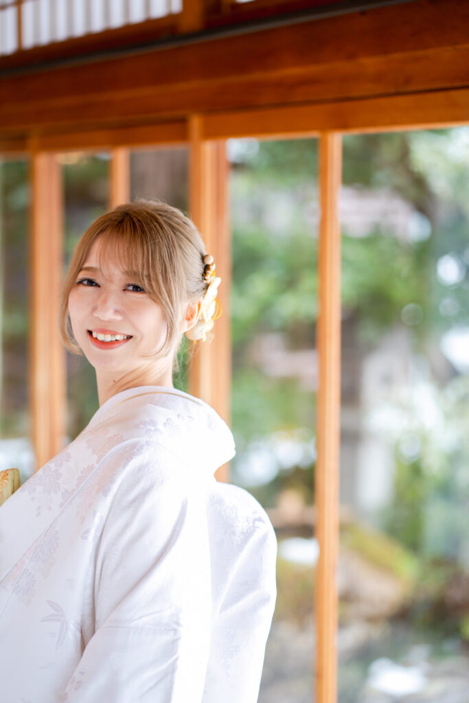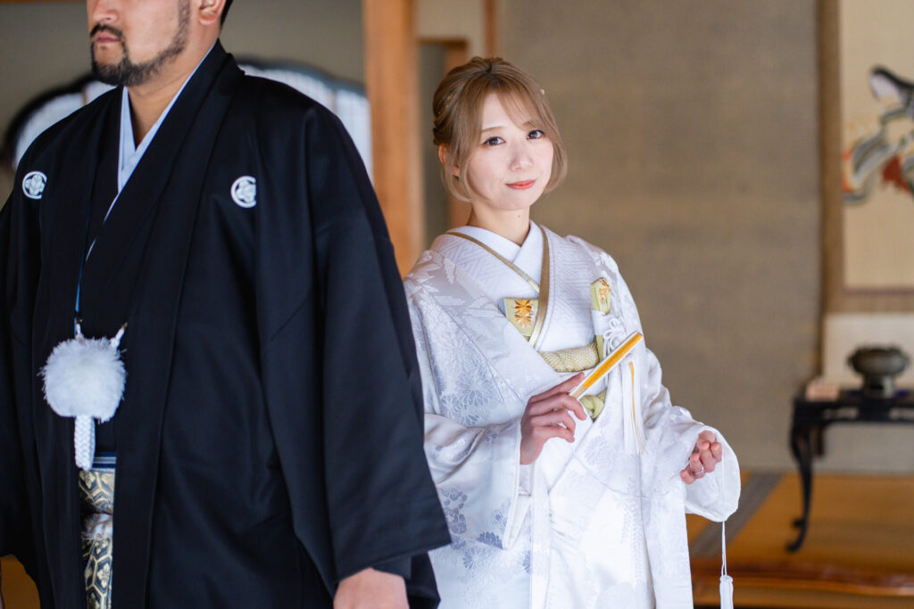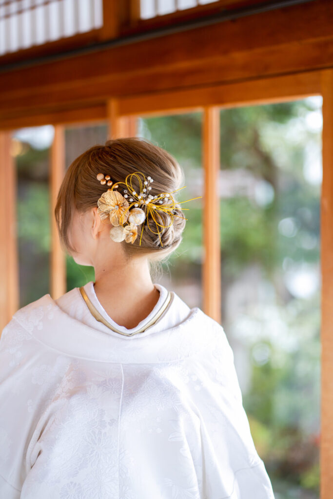 色打掛か白無垢どっちにするかとても悩まれた新婦様ですが、最終的には白無垢をお選びに。