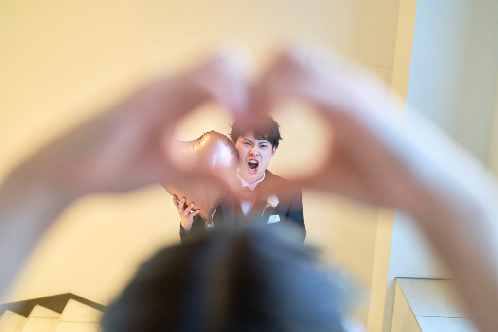 新郎様も緊張がほぐれてきたのかおちゃめな姿を撮影することができました♪