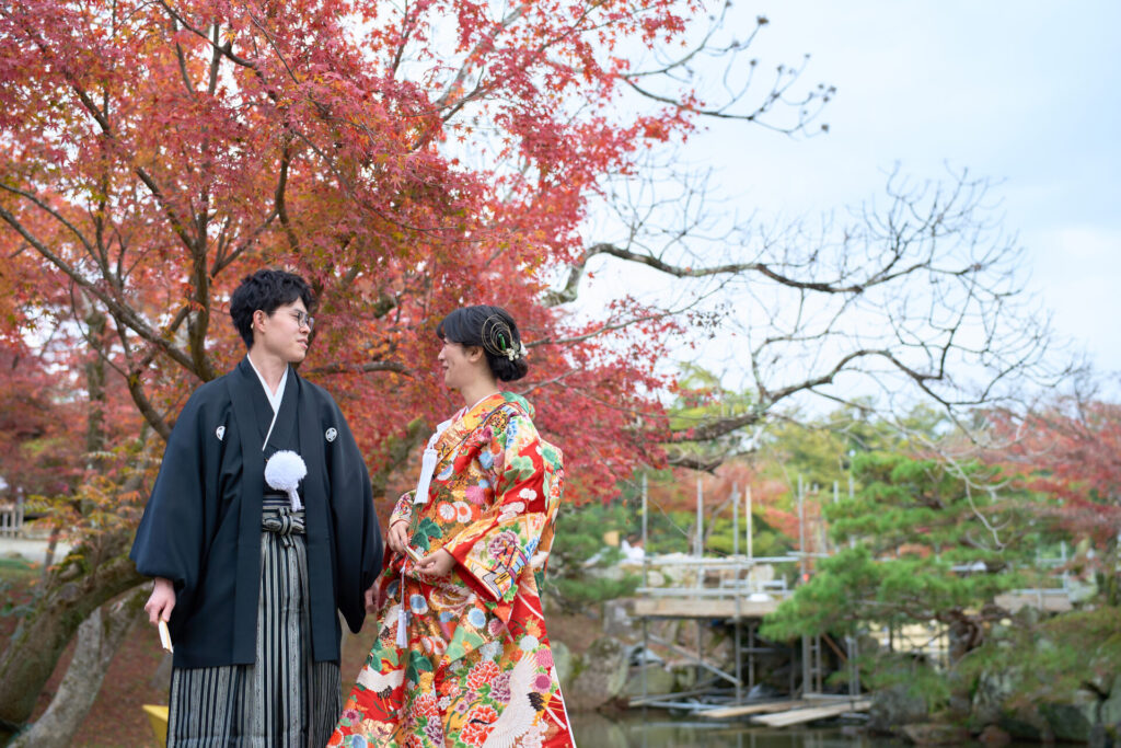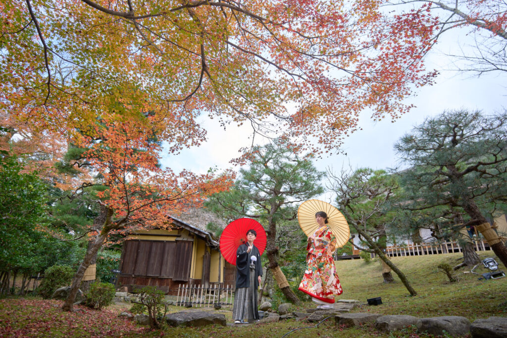 和装ロケーションで紅葉撮影です。