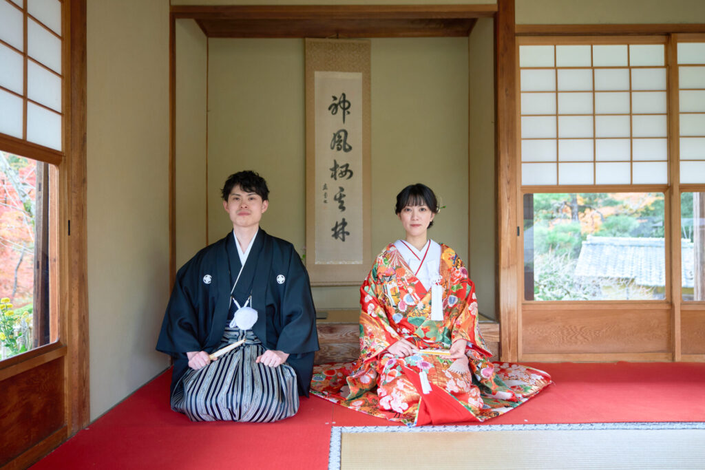 玄宮園から式場に帰ってきて洋装の撮影です。