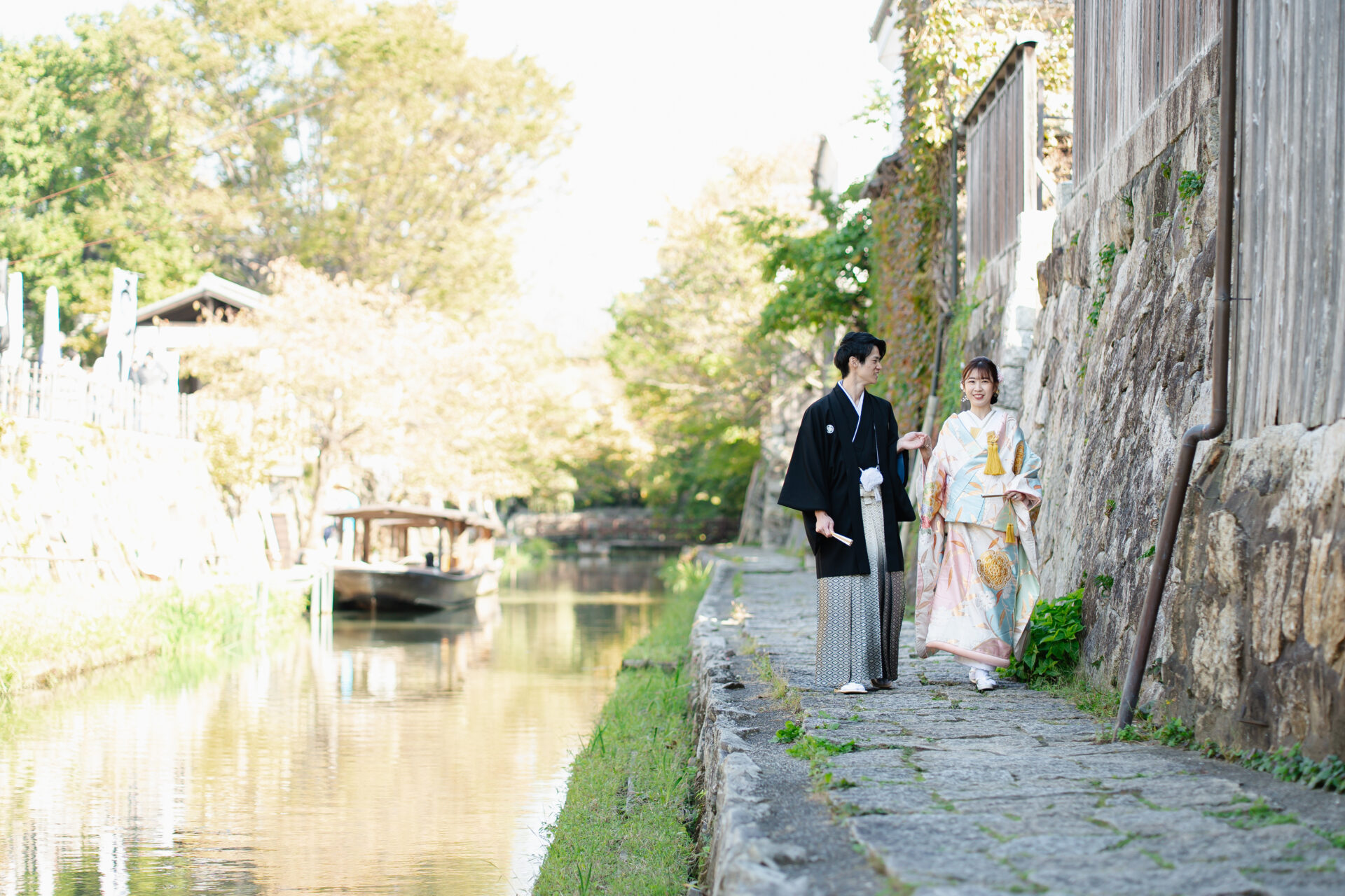 八幡堀は古風な町並みが特徴で近年観光客の方も多い撮影スポットとなっております。