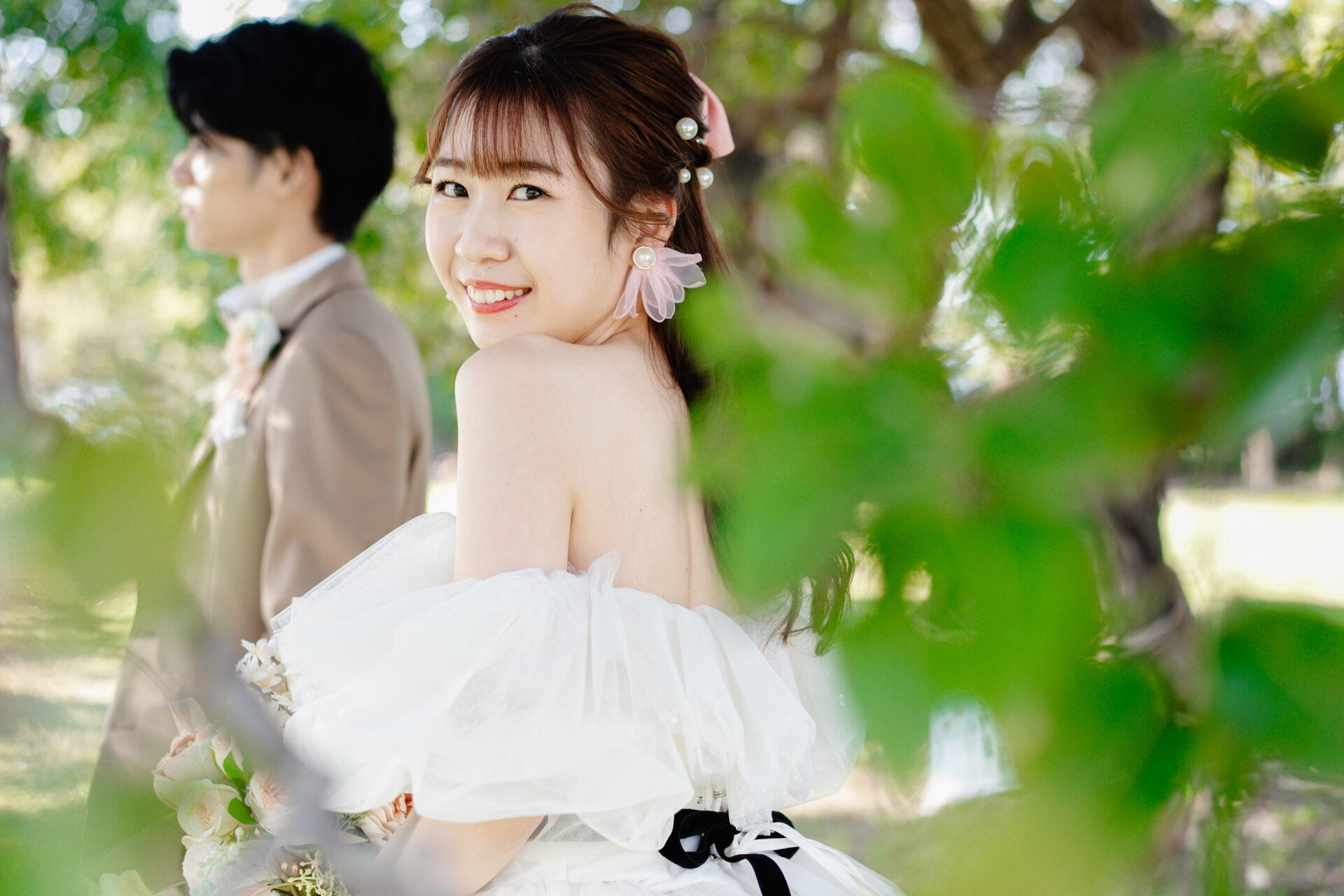 1日目の館内撮影とはまた違ったウェディングドレスもとてもお似合いです。
