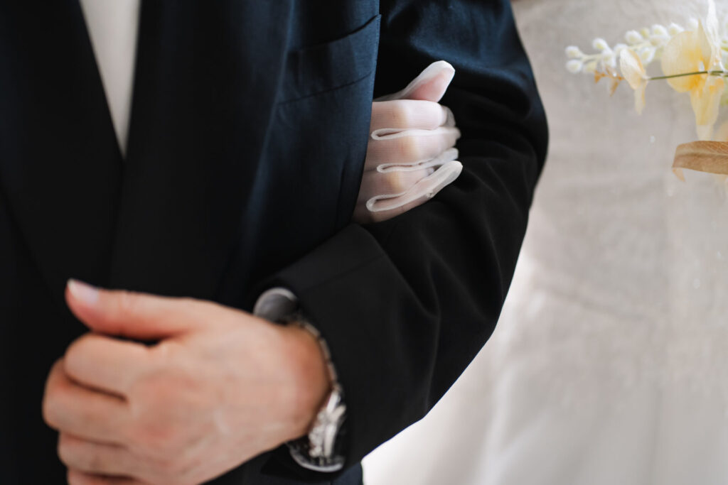 撮影の裏側では新婦様のお父様が目をそらしておられましたが、お母様がお父様の顔をグイっとおふたりの方に向けようとするお姿がとても可愛らしかったです。