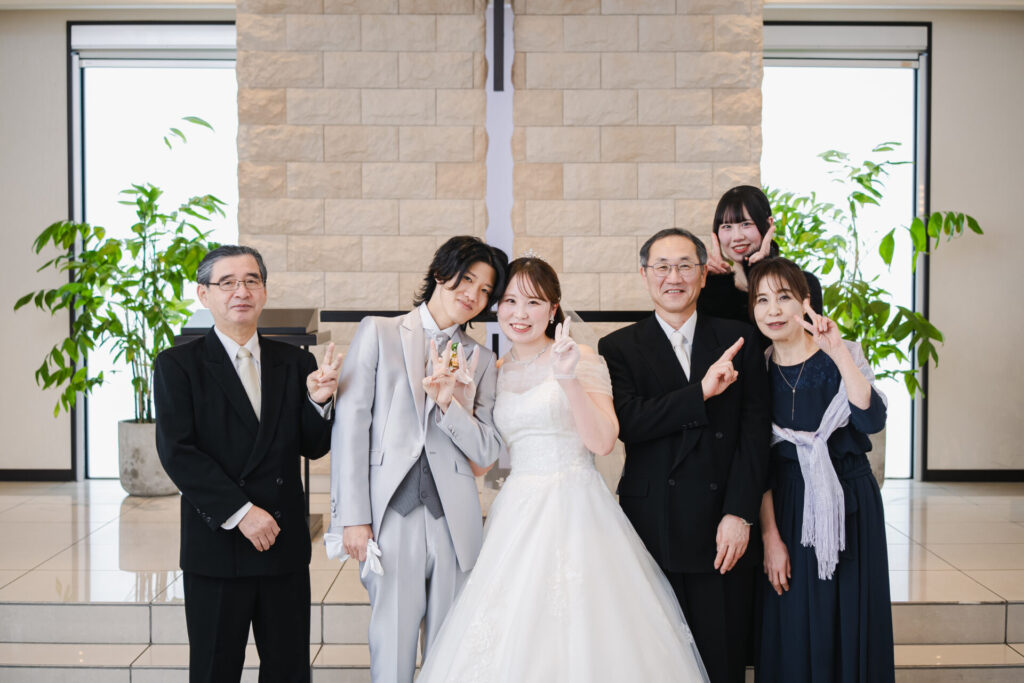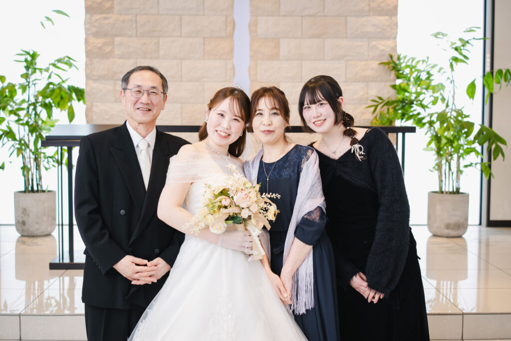 ウェディングドレスでご家族様とセレモニー撮影です。