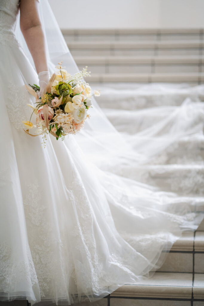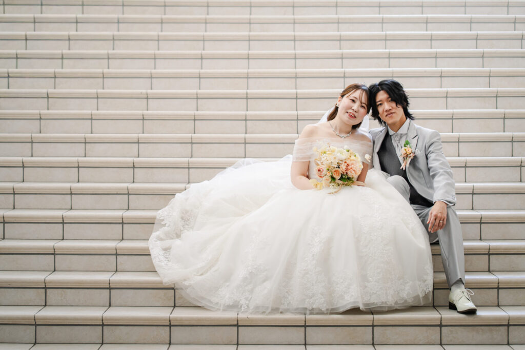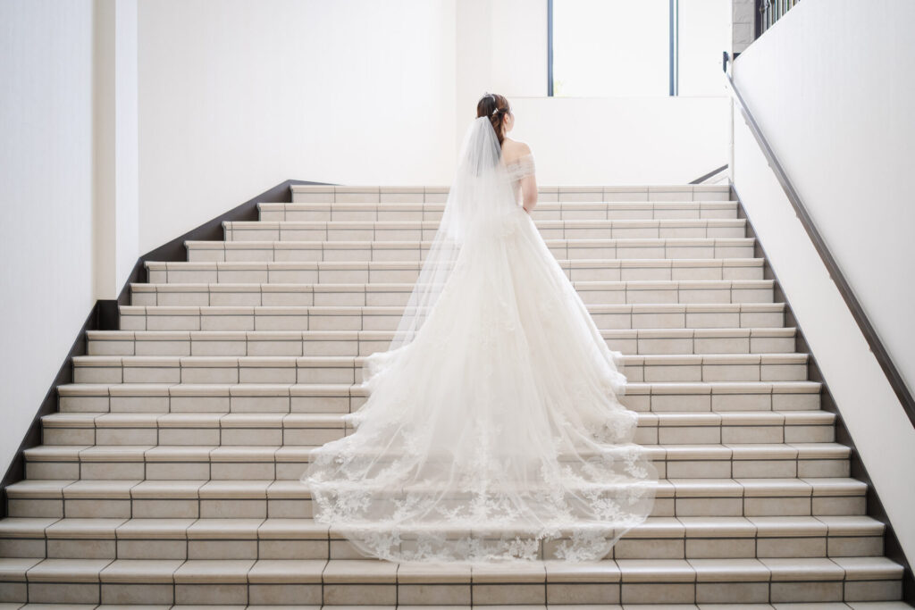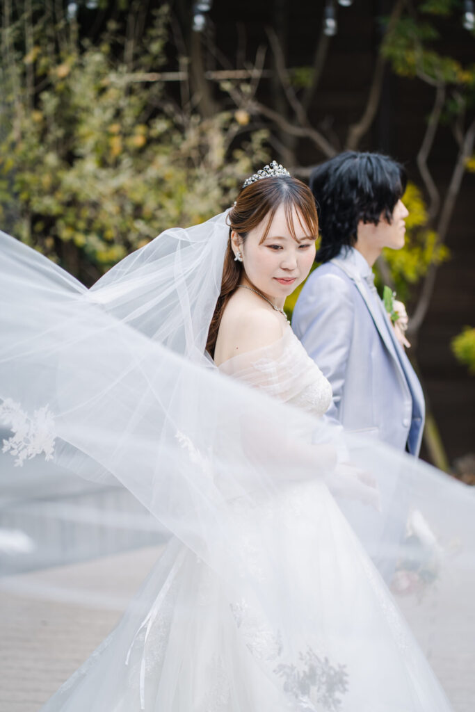 フォトウェディング撮影だからこそ実際の挙式では難しい角度からでも撮影することができます。