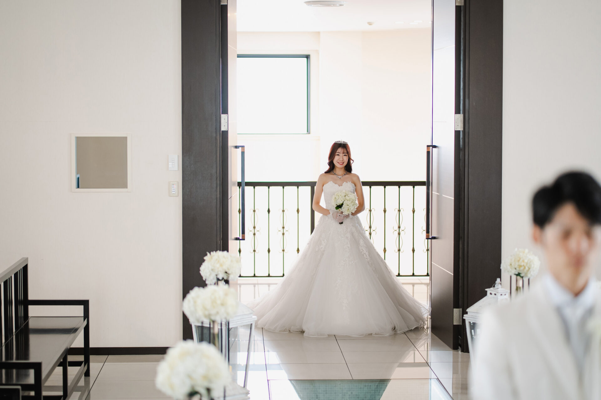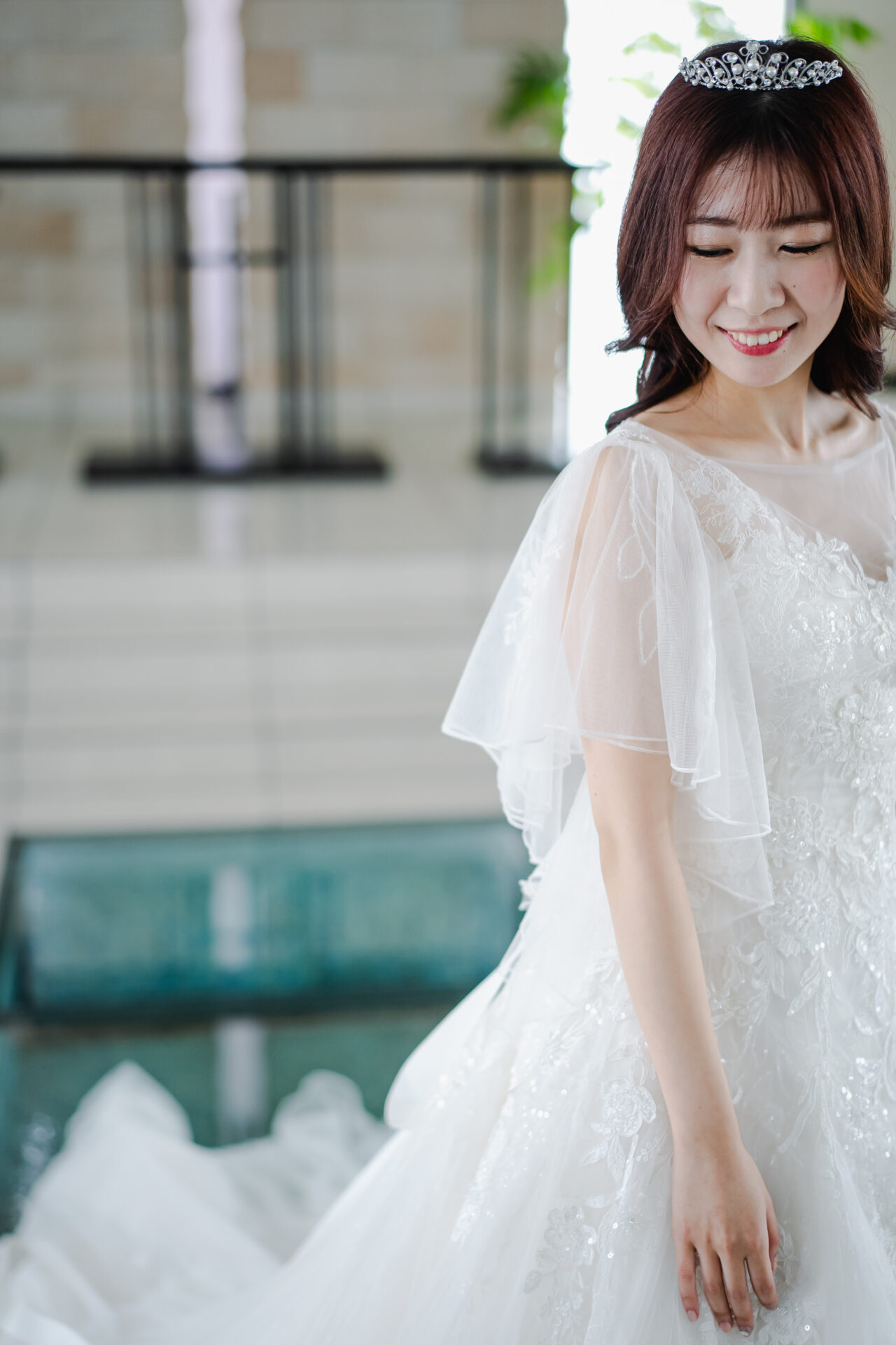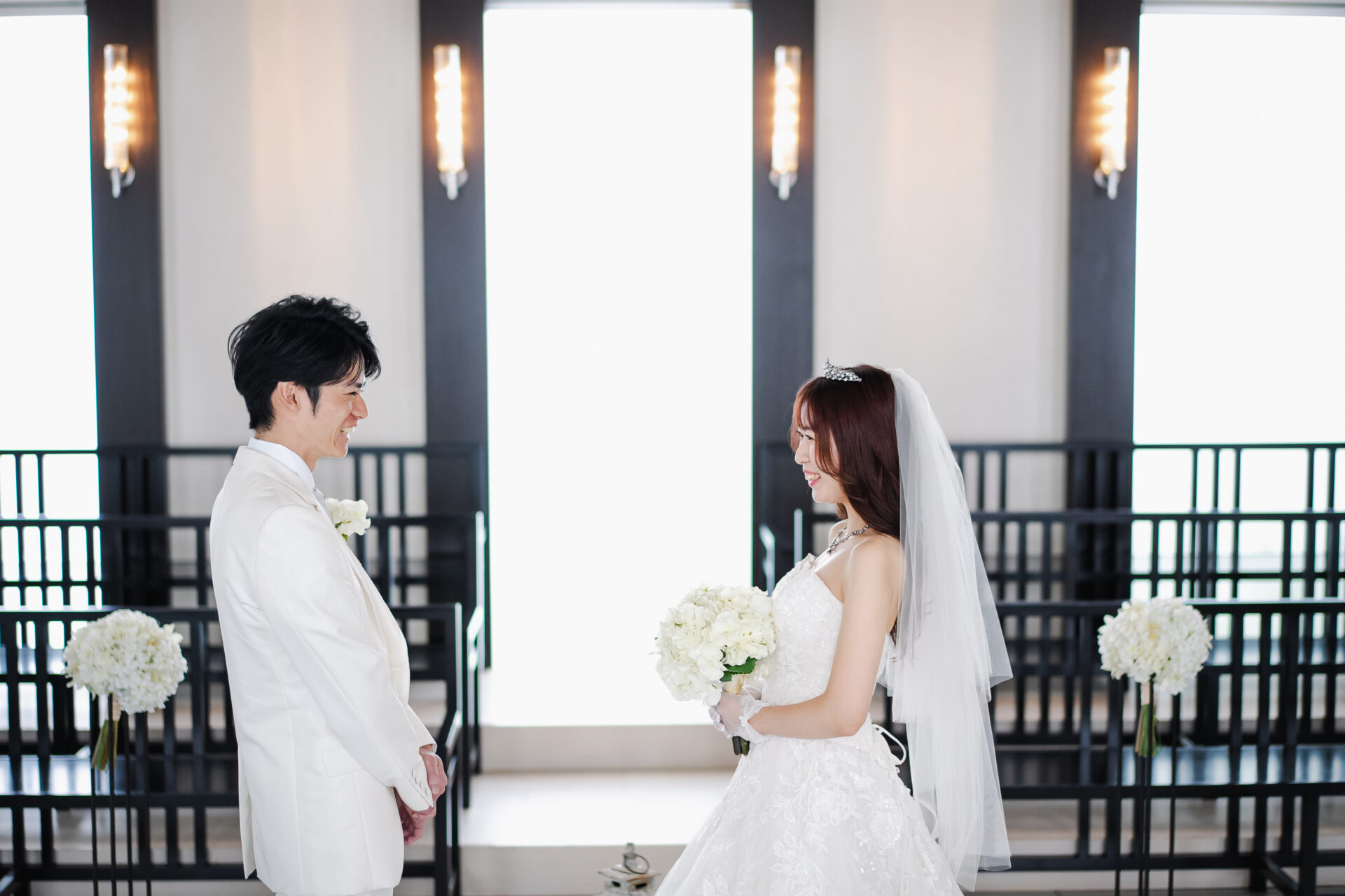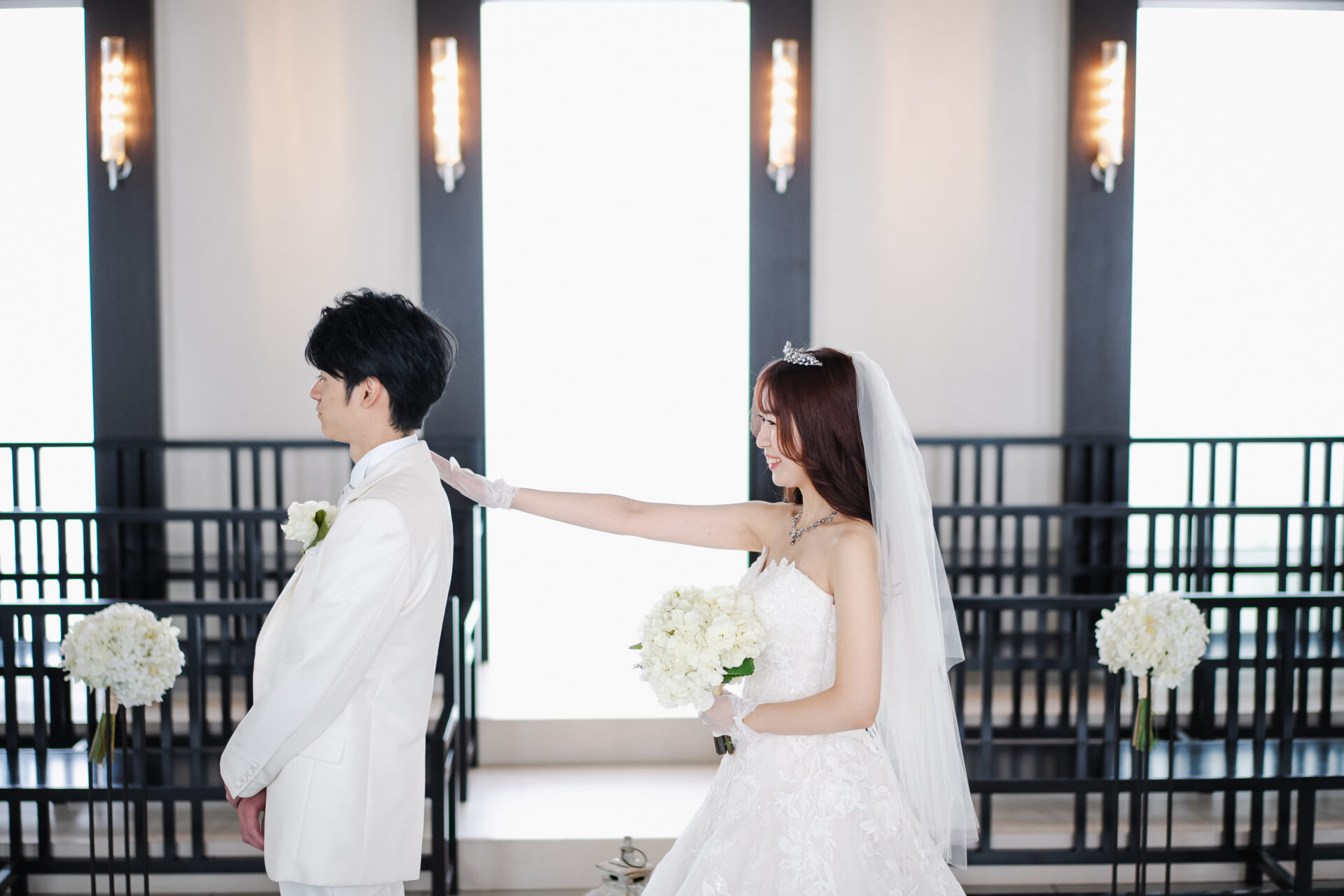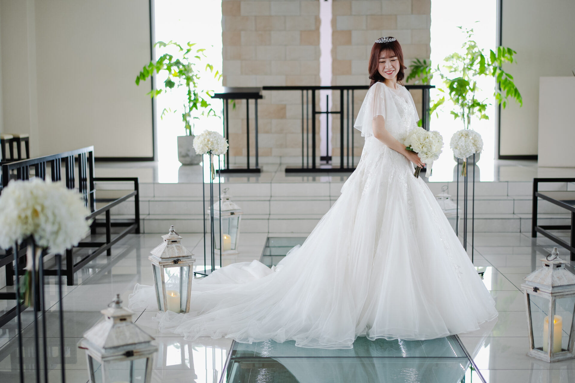 ウェディングドレスは袖付きのものなので、最初は袖なし、次に袖ありなどさまざまバリエーションで撮影させていただきました♪